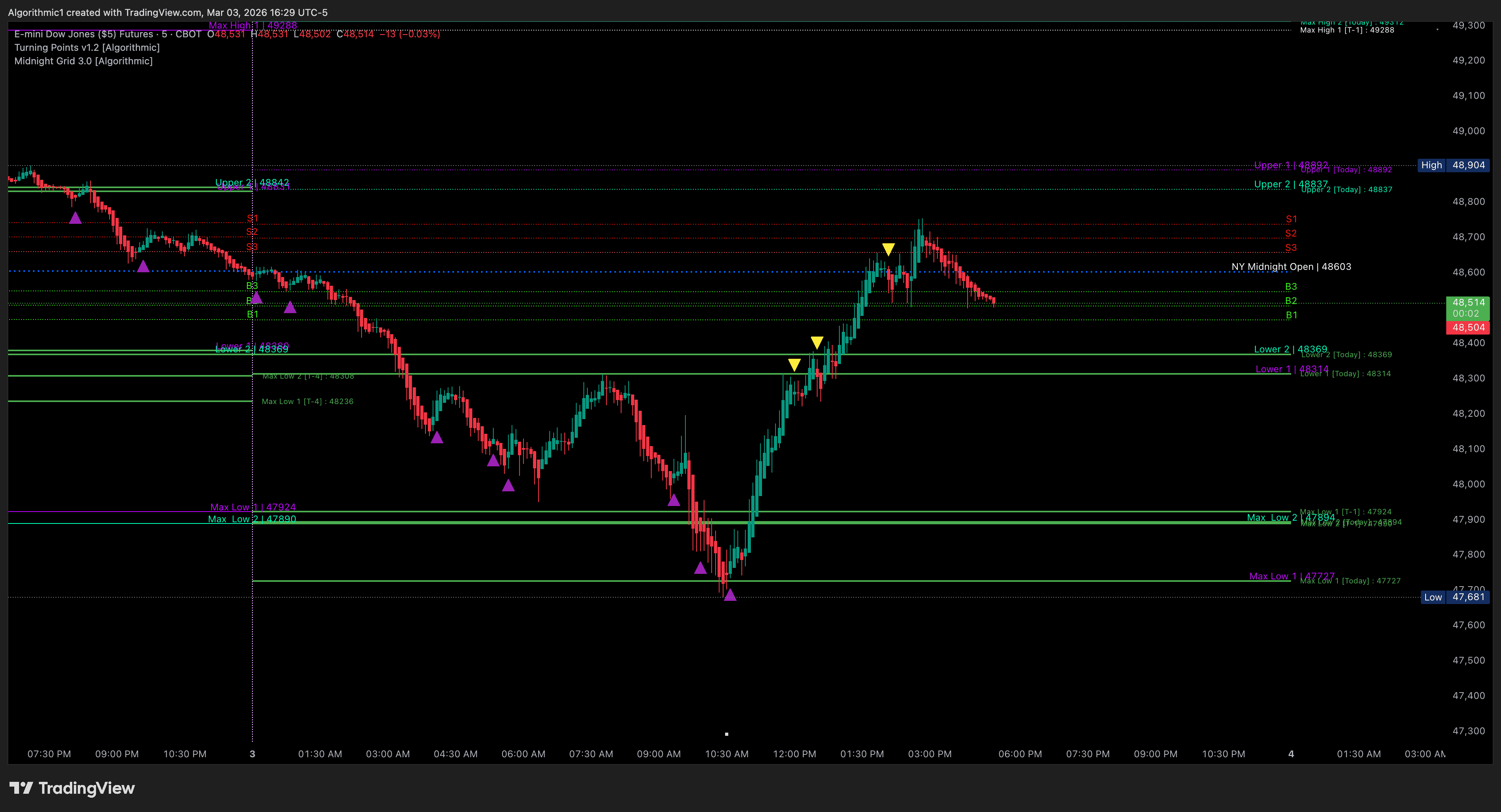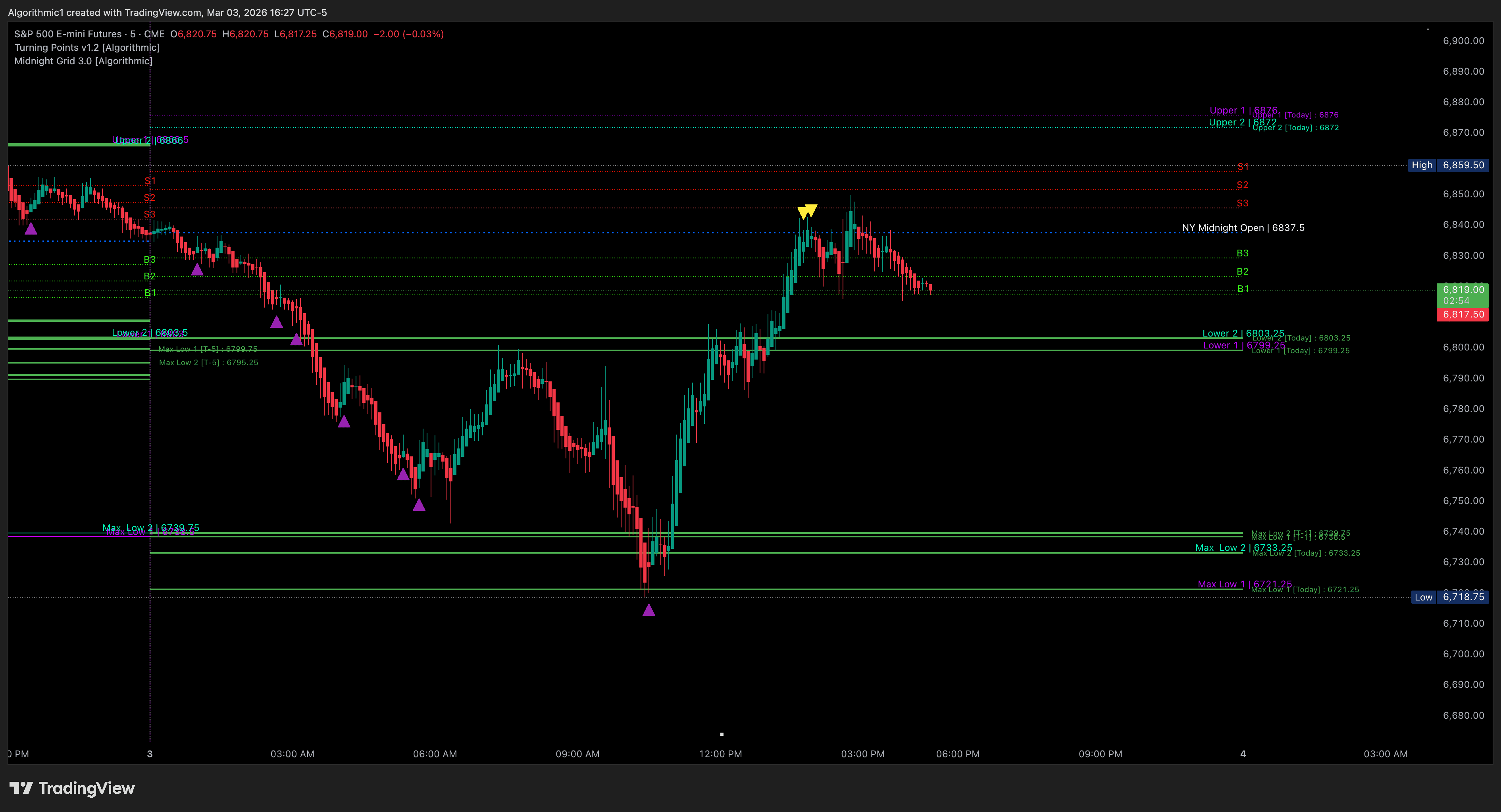 Algorithmic Midnight-Grid and Turning Points Accuracy on March 3, 2026: Live ES, NQ, and YM Futures Breakdown